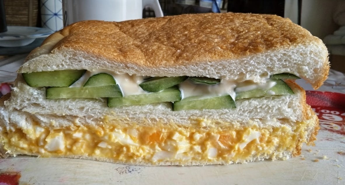 引き続き今日もサンドイッチ。違いはパンを三枚にし、卵と胡瓜ツナのダブルサンドにしたこと。