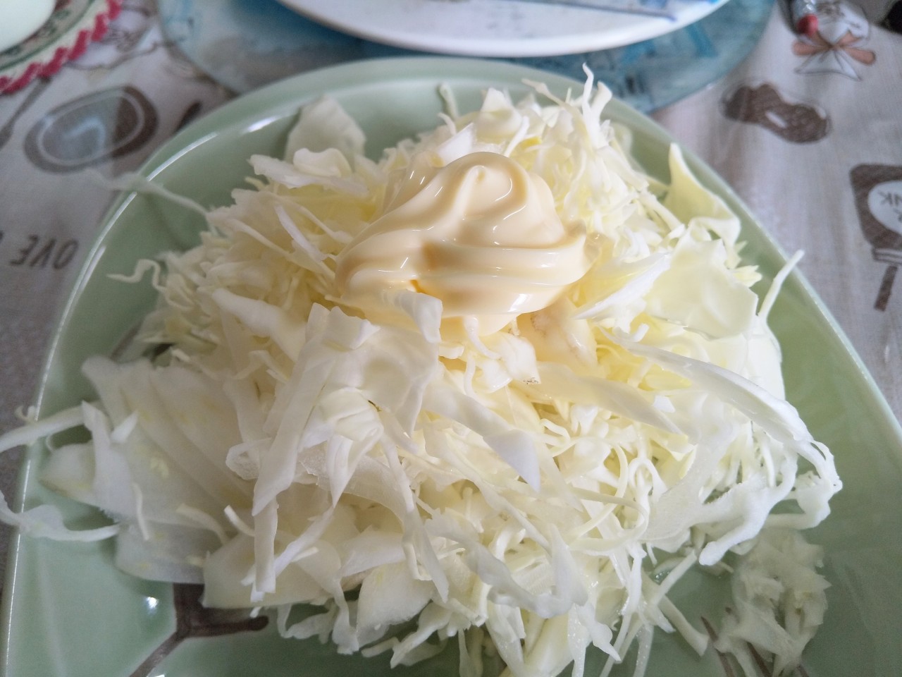 刻みたてのキャベツの千切りは寒玉を使用。甘くて美味しいのだが、刻んで時間が経つと黄色くなるので食べる分だけしか刻めない。