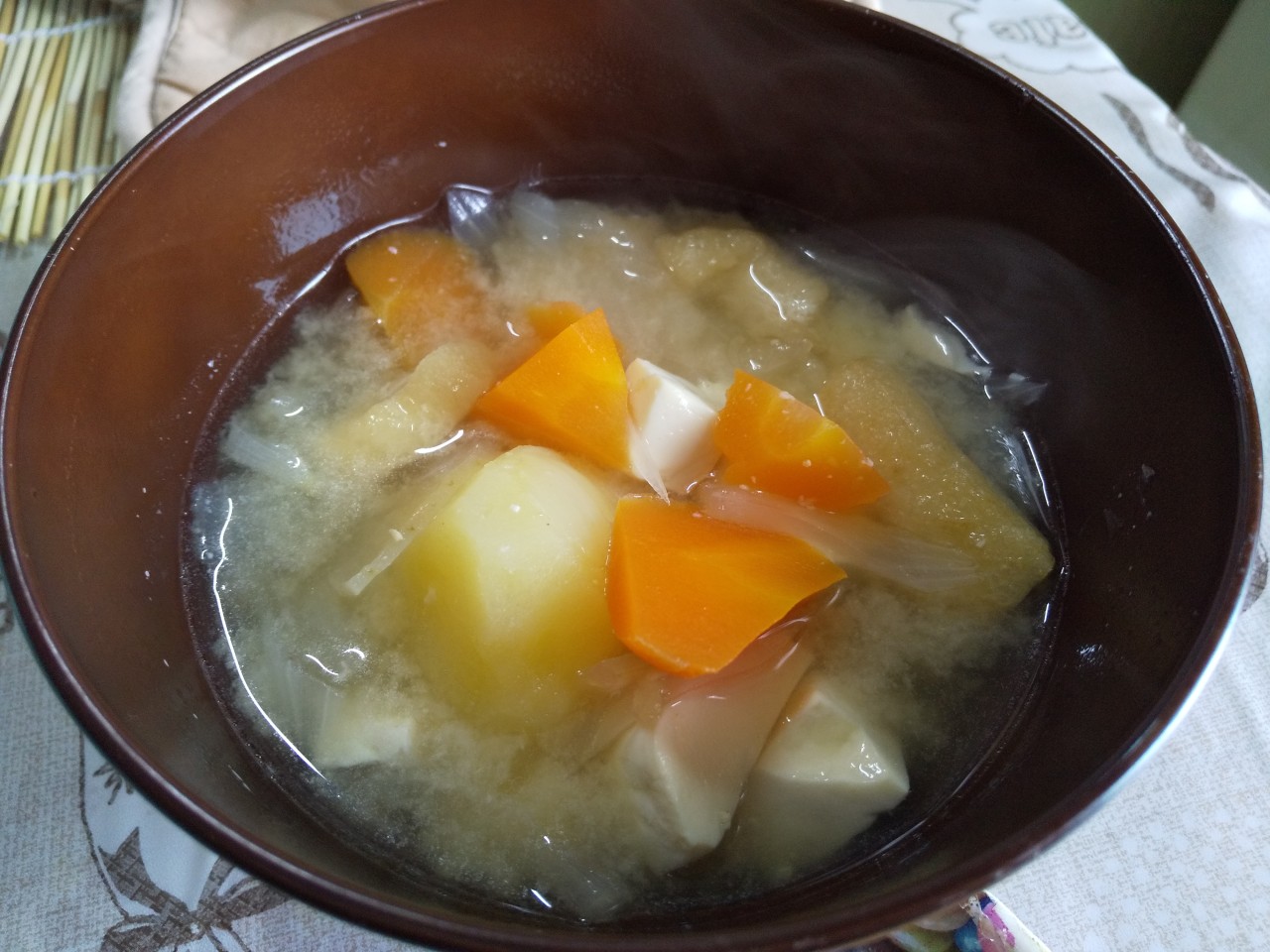 そしてパンと味噌汁をたべるところが我が家らしさというか、変かもしれない組み合わせ。