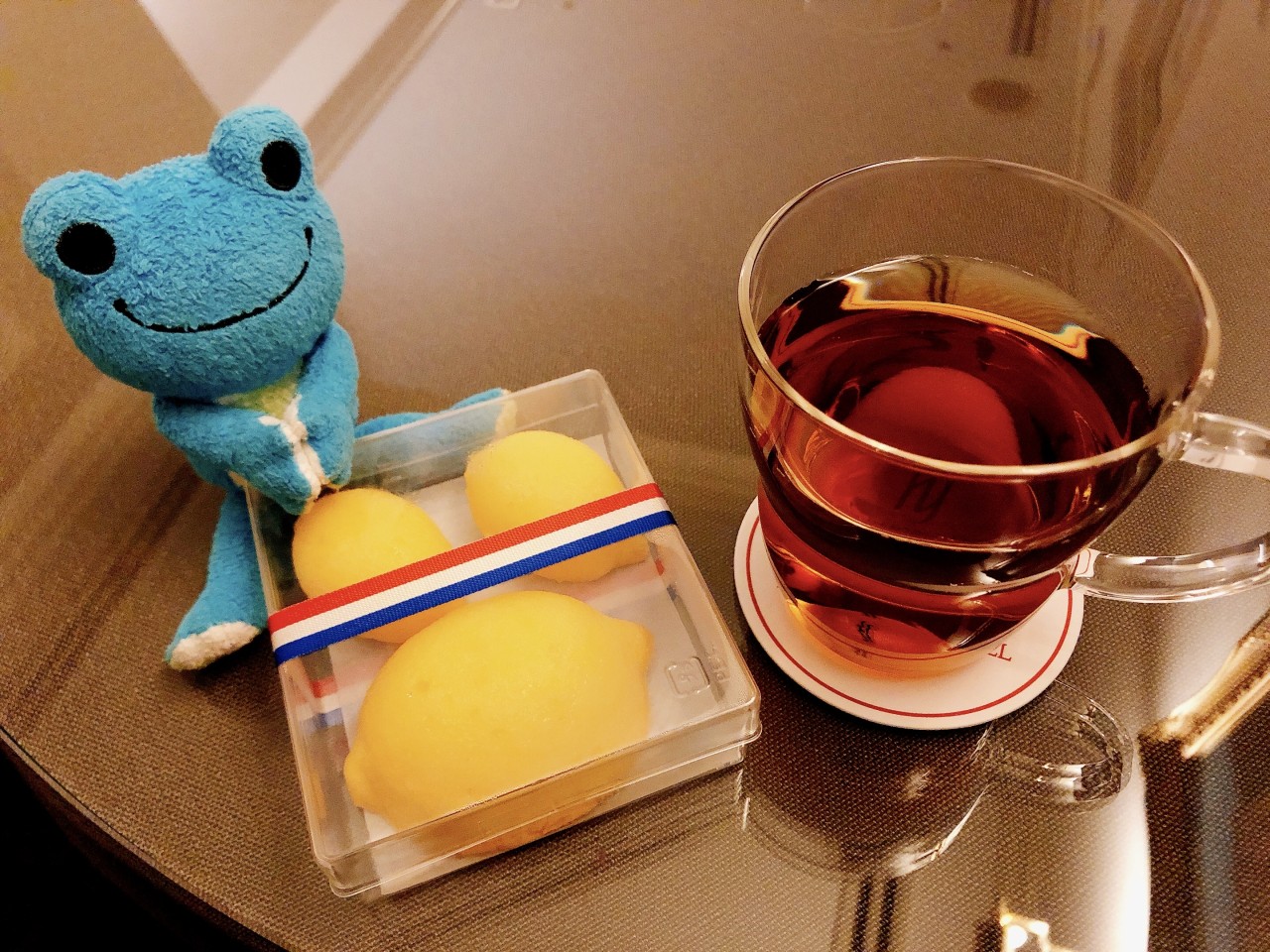 紅茶と一緒にいただきたいところでしたが、コップの中身は旅のおともに持っていた麦茶です…