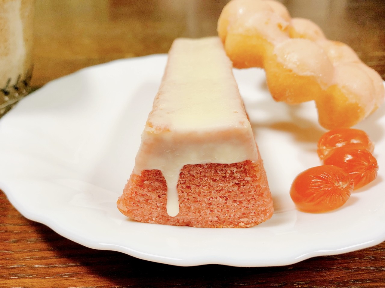 バウムクーヘンはピンクと白の組み合わせはもちろん、この2色の割合とバウムクーヘンの形が推しポケのシッポっぽい!可愛い!!