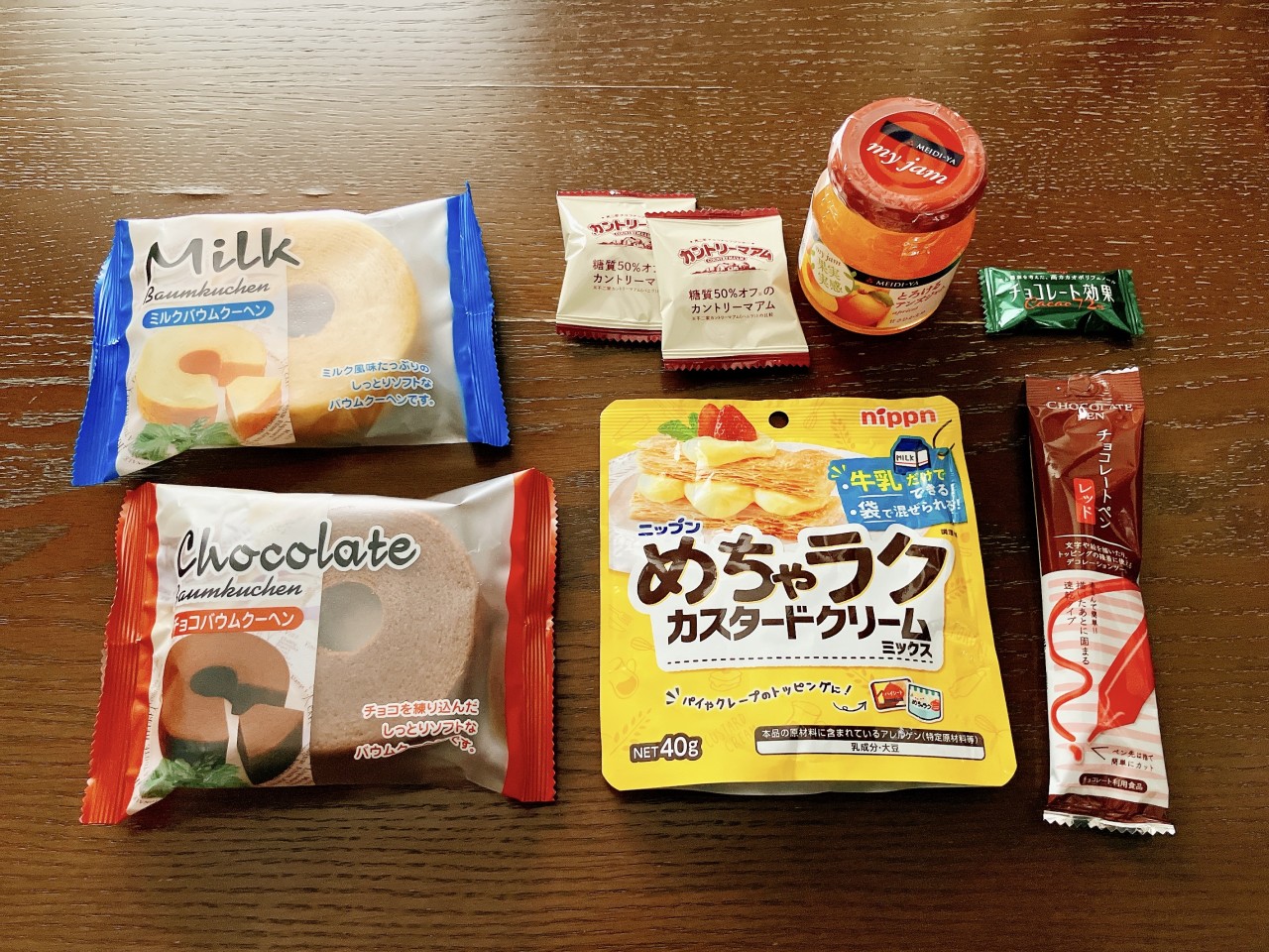 既に完成したものを使っているからまずくはないだろうけど、バウムクーヘンにジャムを塗ってカスタードを詰めてるからあまあまだろうなぁ…と思ってたのですが
