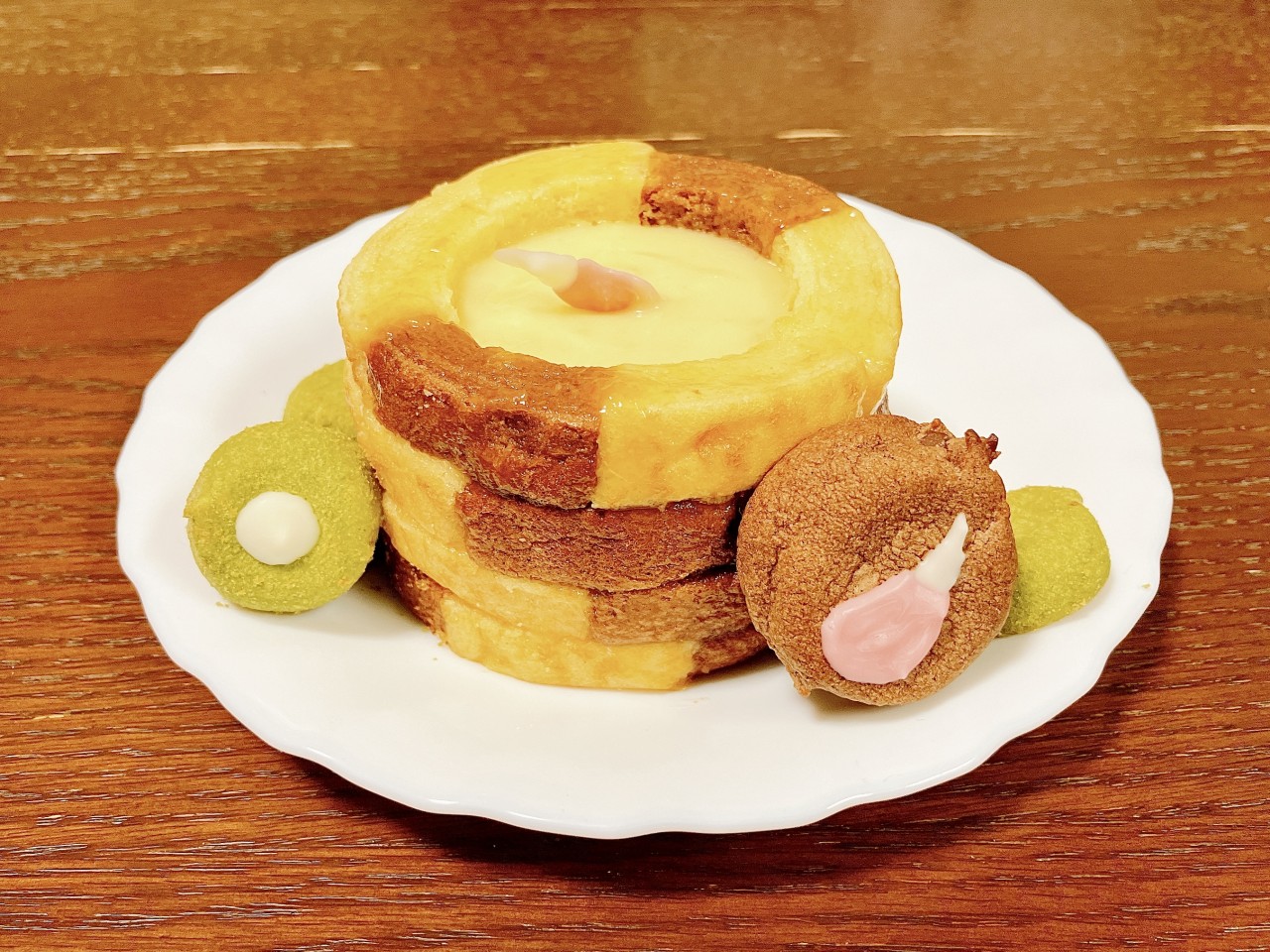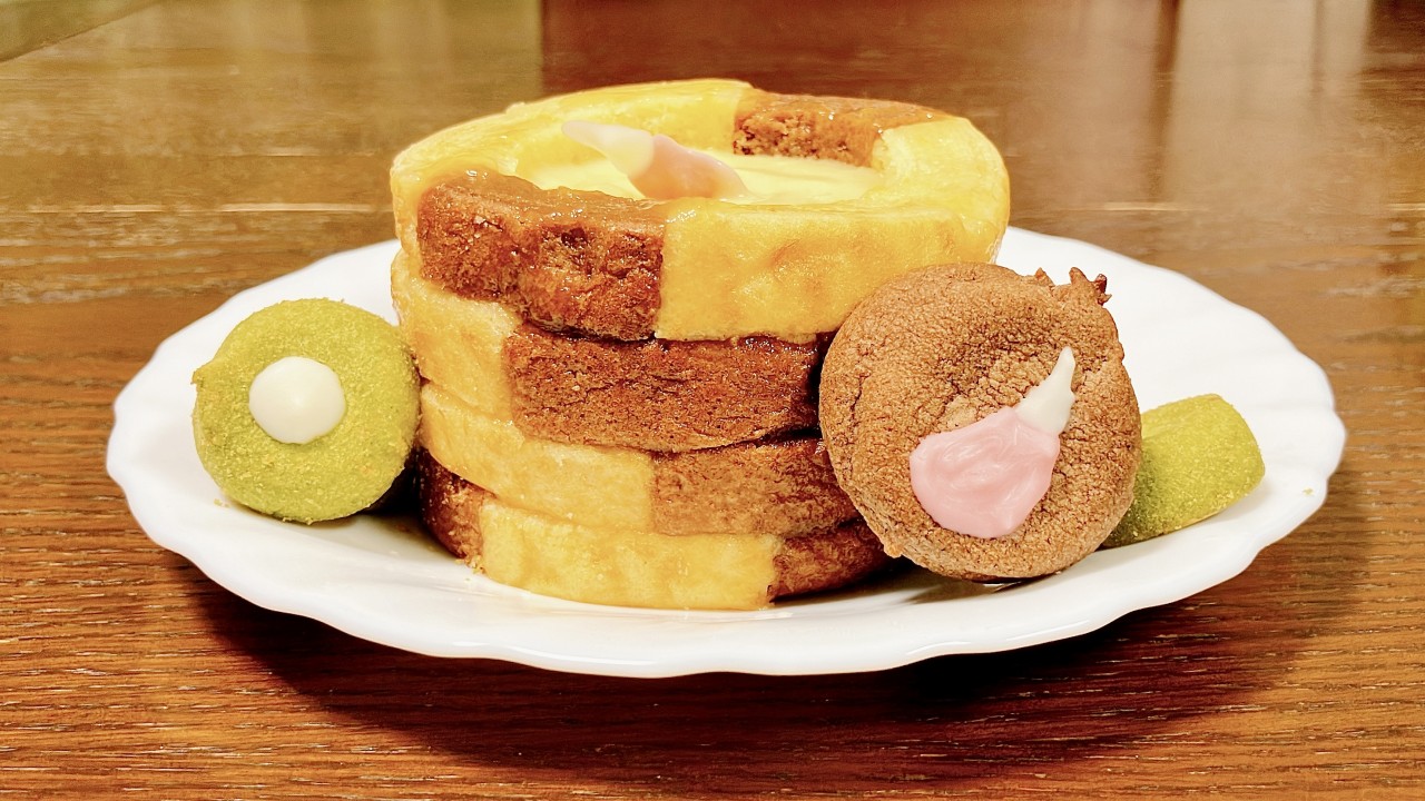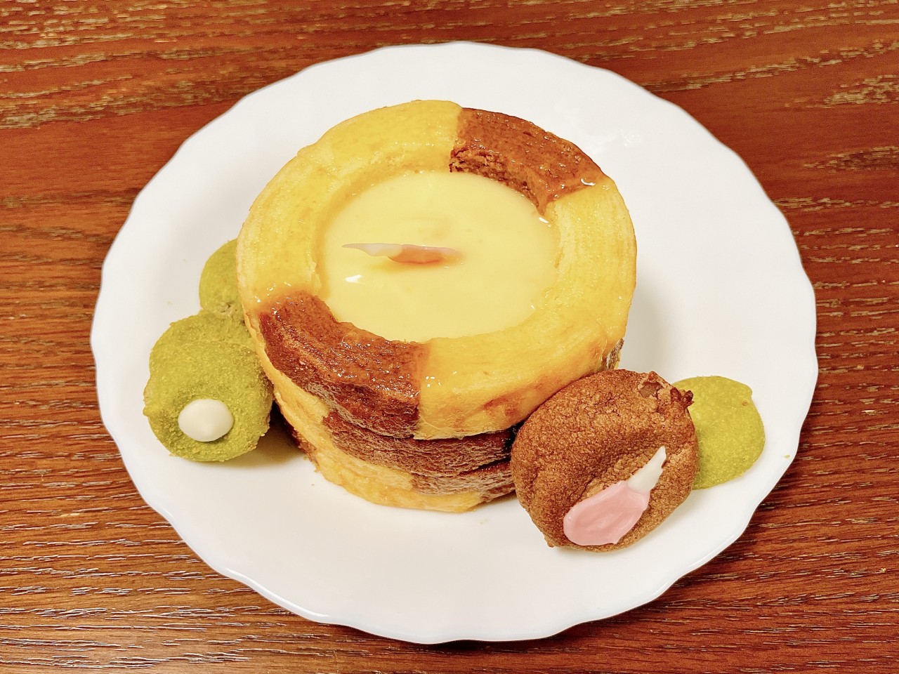今度はちゃんとバウムクーヘンをずらして並べるのを意識しました!