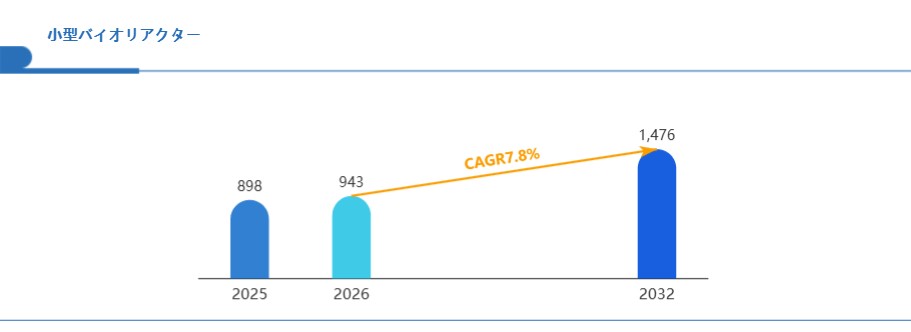 Global reports調査チームの最新レポート「グローバル小型バイオリアクター市場規模、主要企業シェア、ランキング分析レポート【2026年版】」によると、グローバル小型バイオリアクター市場は2025年の898百万米ドルから2032年には1476百万米ドルに成長し、2026年の市場規模は約943百万米ドルと推計されており、2026-2032年のCAGR(年間成長率)が7.8%に達すると予測されている。