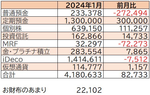 【貯蓄記録】2024年1月の記録