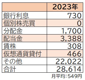 その他は不用品の買取でいただいた分です。銀行利息は去年タイガースの優勝キャンペーンでじぶん銀行が金利アップしていた時期にガッと貰えました。