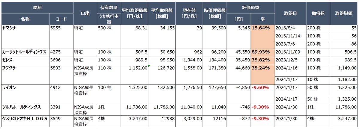 2024年1末の保有株 #