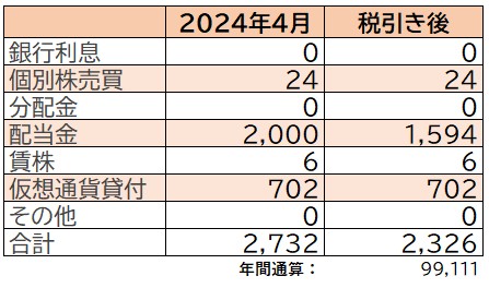個別株の売買などほぼしない月だったのですが、配当金とレンディング利息のおかげで2000円ほど副収入があったので嬉しい限りです。