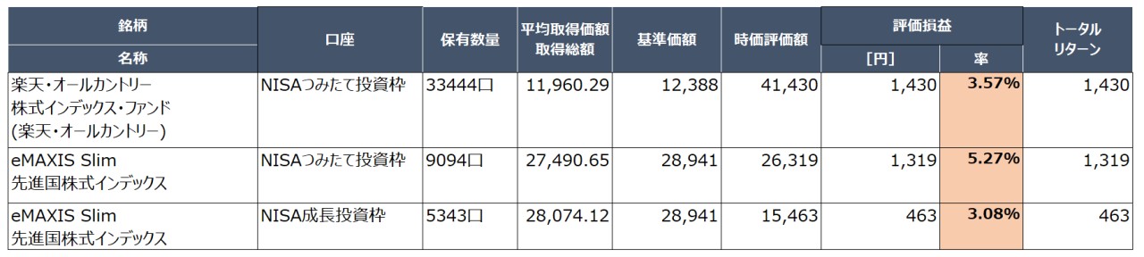 楽天さんのオールカントリーと、三菱さんのeMAXIS Slim先進国株式インデックスです。楽天のほうを1万、eMAXIS Slimのほうを5000円ずつ毎月積み立てています。