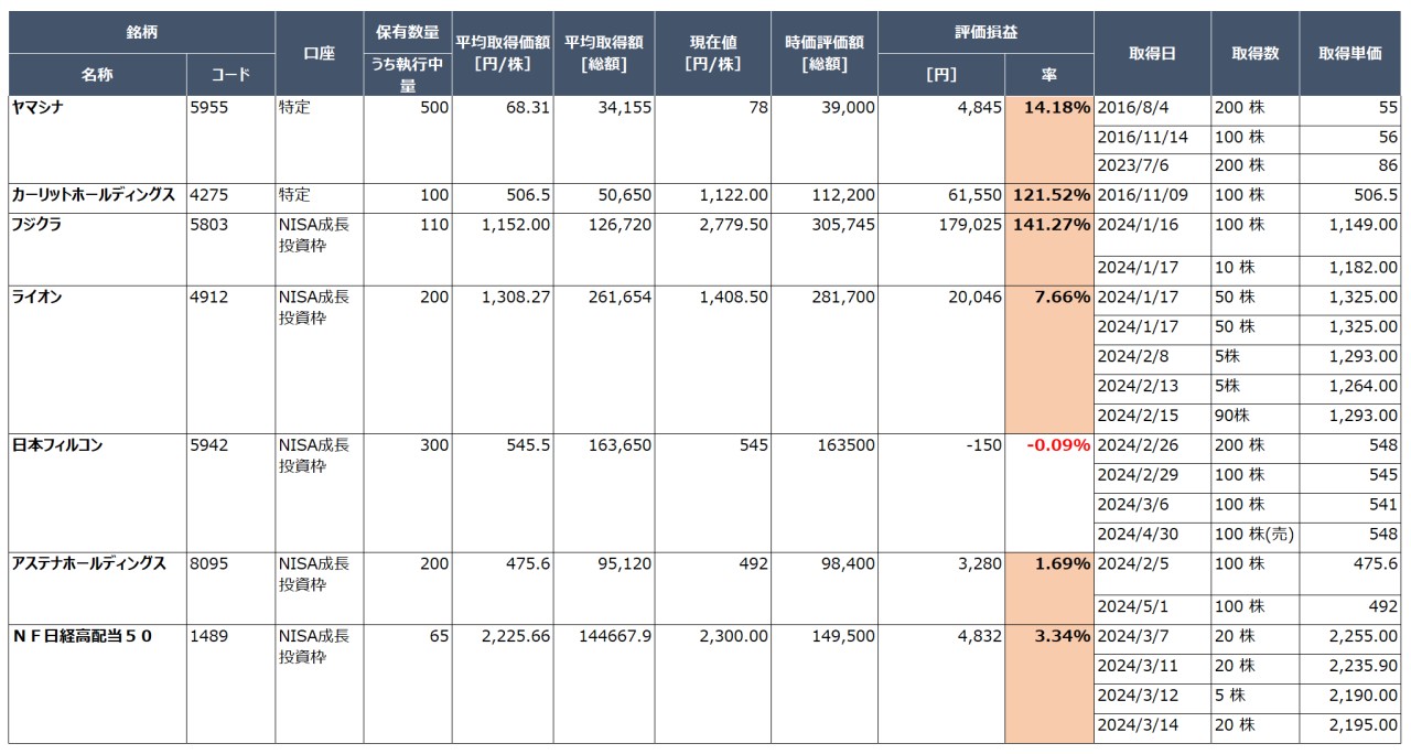 あとは、日本日本フイルコンさんを100株売却して、アステナホールディングスさんを買い増ししました。