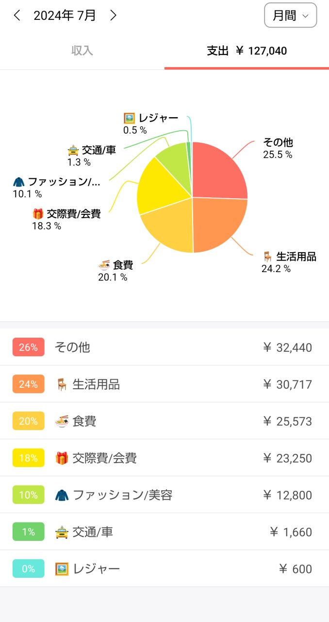 ファッション/美容はいつもの美容院で、これは毎月の積立から出したので実質0円です。それでも5万円オーバーしておりますが…。