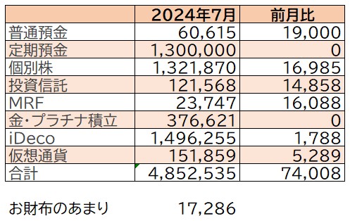 更新の間が空いてしまいましたが、「7月度(2024/6/25~2024/7/24)の貯蓄記録です!