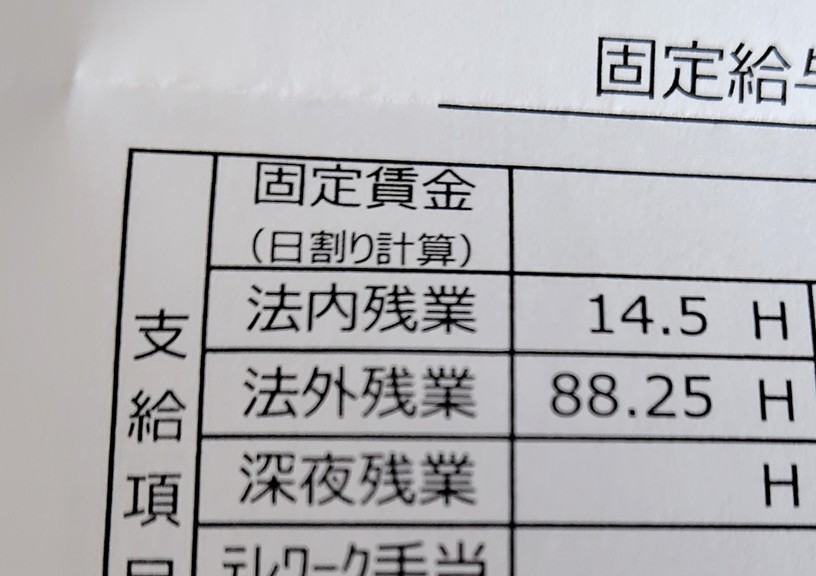 深夜および日曜日の勤務はサービス残業扱い(会社からは記載していいといわれていたのですが、勤務扱いにすると休憩など取りづらく、つけないほうがメンタル的に楽だったのでつけていませんでした)だったのですが、それでも100超えていました。