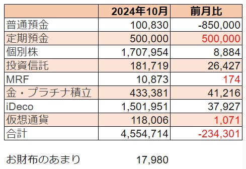 【貯蓄記録】2024年10月の記録