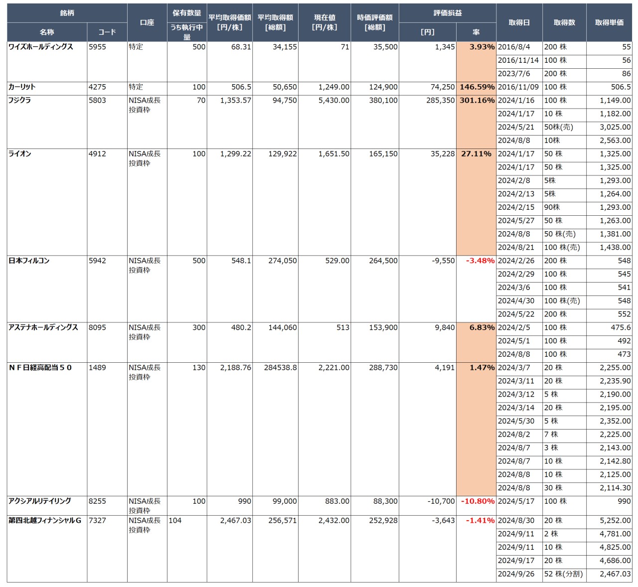 2024年10月末時点の保有株の情報を棚卸します!
