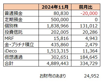 【貯蓄記録】2024年11月の記録