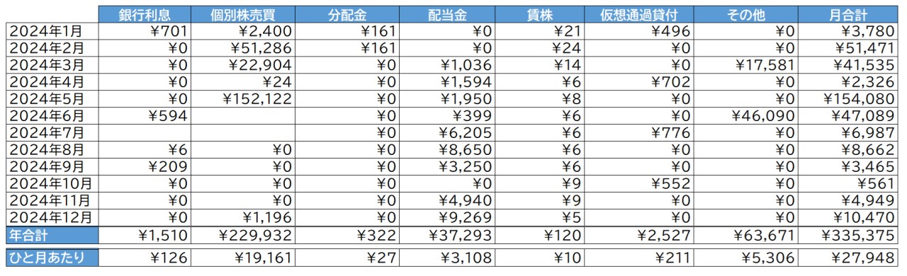 2025年は賃株は無くなったこともあり、この副収入の表も更新しないとだなと思っております。