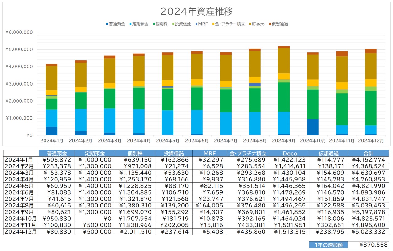 さてタイトル通りですが、2024年が終わったので1年間の資産形成結果を振り返っていきたいと思います!2024年の資産形成推移結果 #