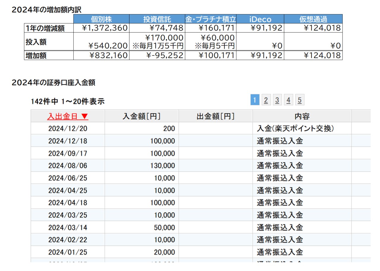 2024年は転職し、数カ月無職だったり、運転免許を取りに合宿に行ったりして生活防衛費口座が力尽き、定期預金を崩したので普通預金、定期預金は前年比マイナスになってしまいました。