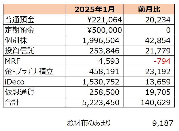 1月度(2024/12/25~2025/01/24)の貯蓄記録です!