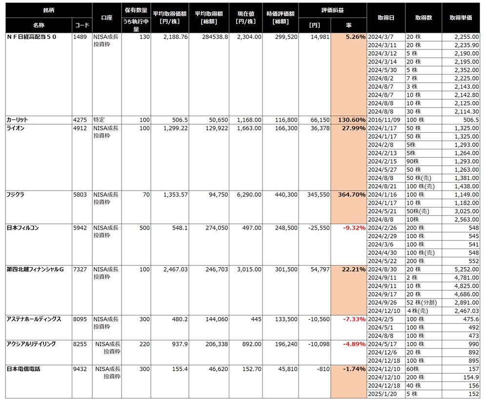 【個別株】2025年01月の保有株