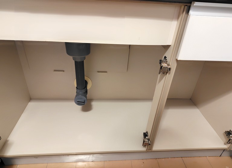 ので、その時期になるとキッチンシンクの棚の扉は前回にして扇風機を向けて24時間換気しているのですが、「もう扉開けっ放しするなら邪魔なので取りたい…」とずっと思っていたのです。