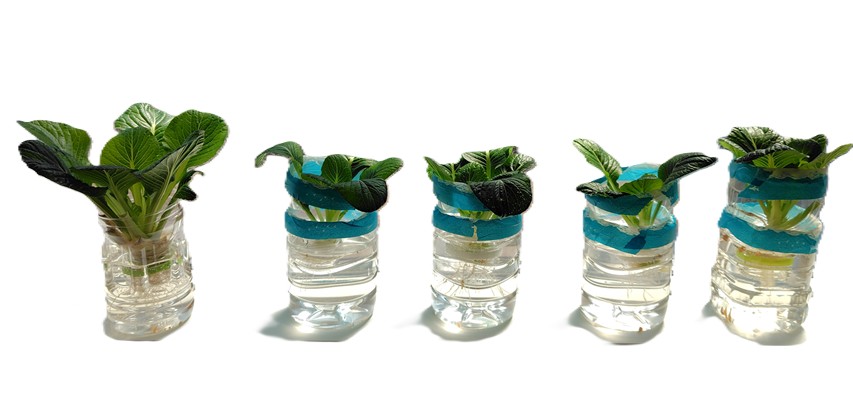 ペットボトルを半分に切って植木鉢代わりにしています。根っこが出てきたら栄養を与えた方がいいということだったんですが、観葉植物にあげている液肥を与えるのに少し抵抗があり…