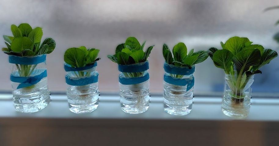 窓際で育てている小松菜たち。