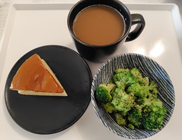 本日はコンビニでの駐車練習がなかったのと、昨日諸事情で大量に買ってしまったチーズケーキの消費のため、朝からケーキでした(+血糖値の上がりが怖いのでささやかなベジファーストとしてチンしたブロッコリー)。
