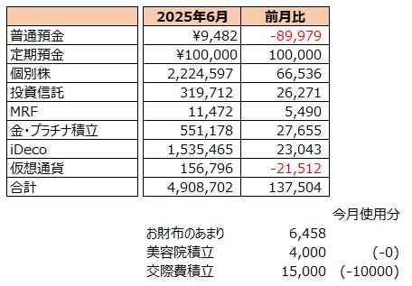 【貯蓄記録】2025年06月の記録