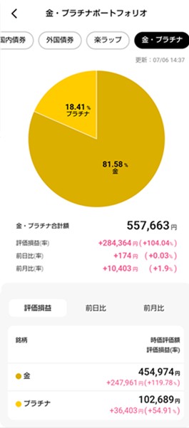 金・プラチナの積み立て状況です。