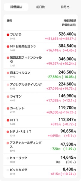 各銘柄の評価損益はこんな感じです。