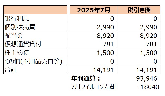 売却益はアステナさん100株分、あと先月の日本フイルコンさん400株の売却分の損益が計上されていなかったので、今月の年間通算に計上しました。