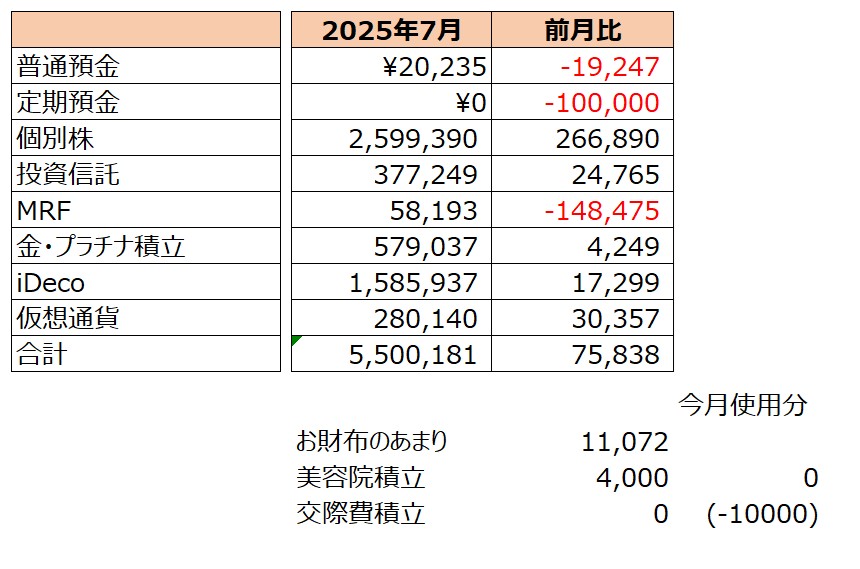 【貯蓄記録】2025年08月の記録