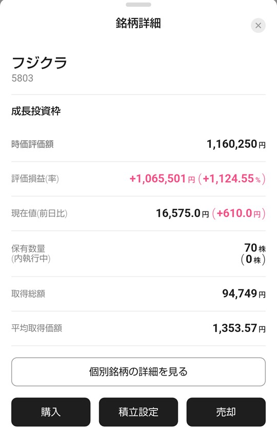 これはちょっと前のスクショですが、フジクラさんが引き続き爆上げしてくれていっています。
