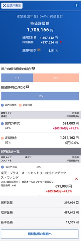 iDecoのほうも楽天の同じインデックスファンドを5000円積み立てています。