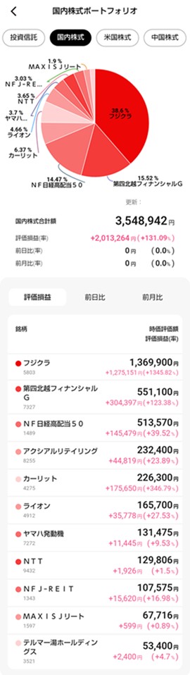 月末だったので下がってきている銘柄もありますが、評価損益上はすべてプラスで終わることができました。