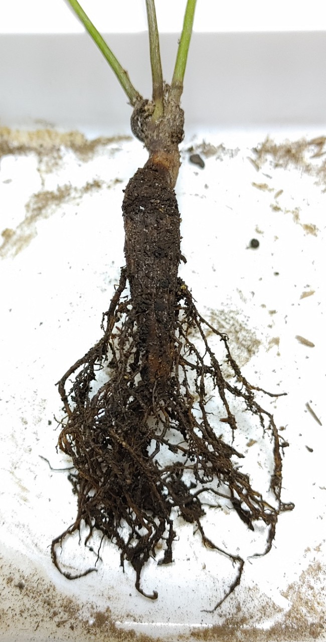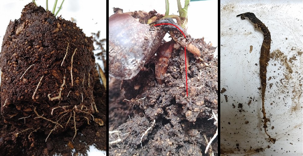 そして真ん中の画像の赤線が入った部分が左側から出てた主根なんだけど、切ったらするっと抜けたし側根も抜いた時はほとんど出てなかったから発育不良みたいな状態だったのかな?