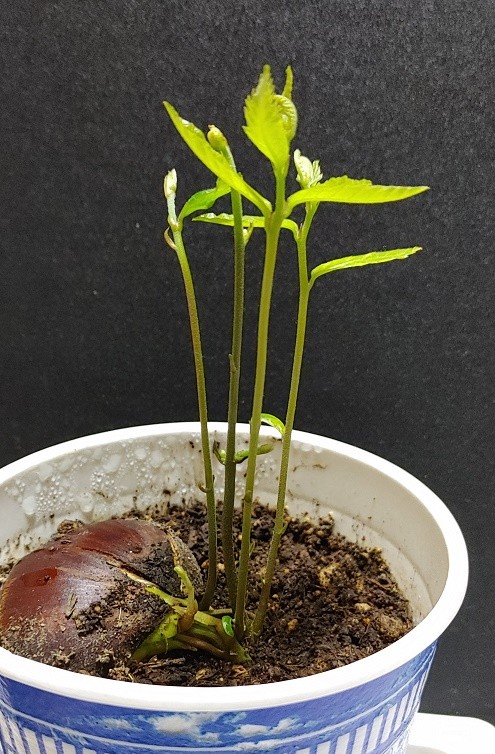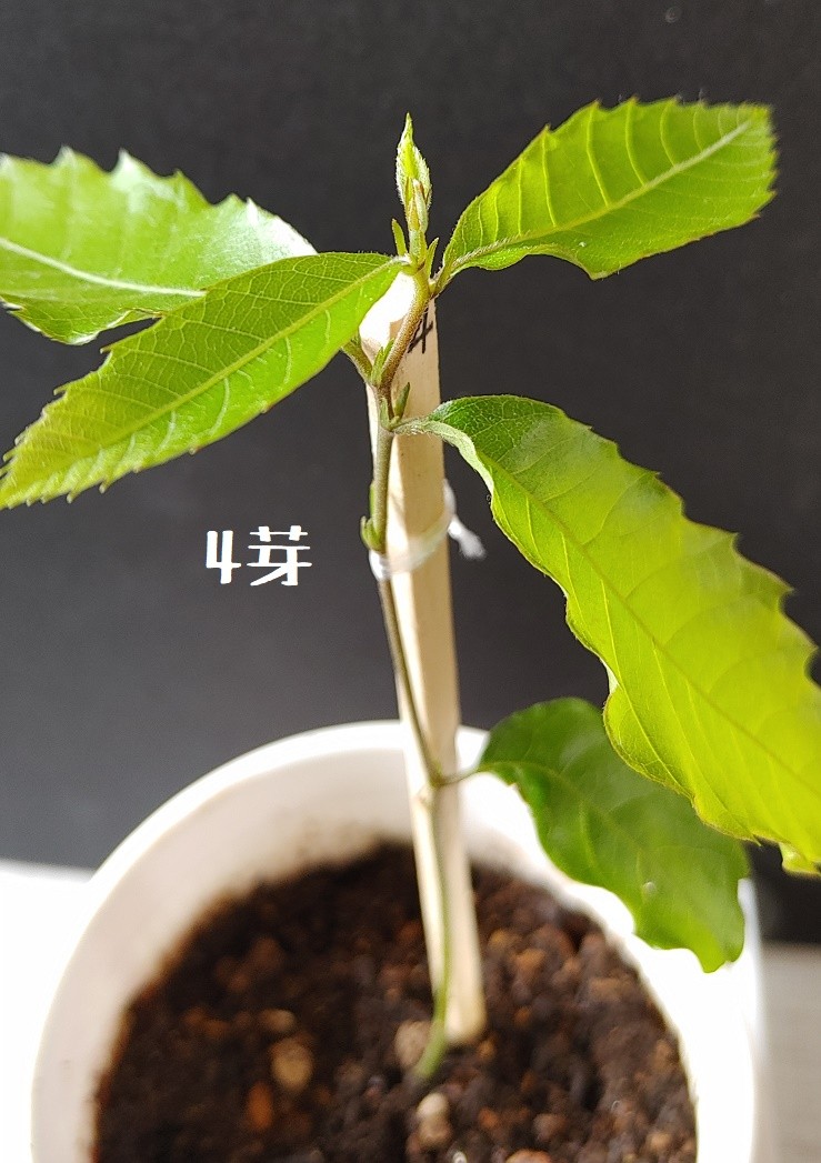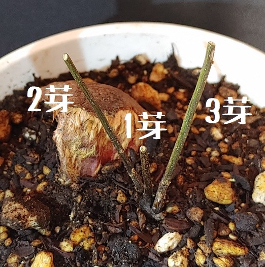 この子らは主根が別だったから、4芽の子が栗本体から取れたのを機に別容器へ。
