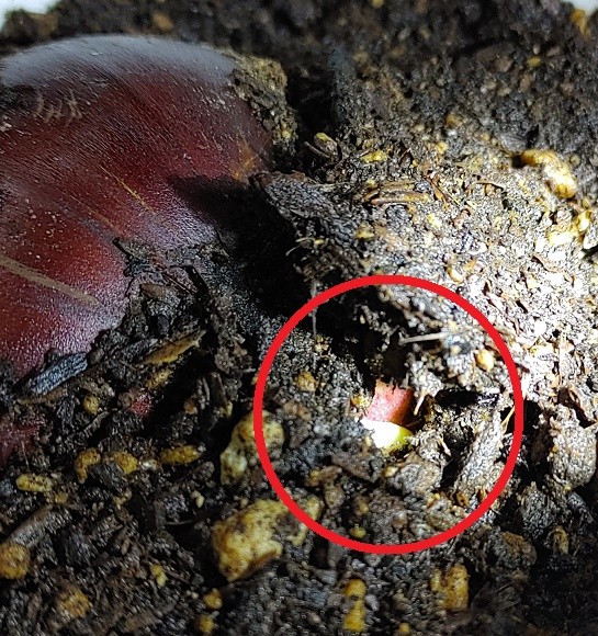 発芽の兆候を確認。約102日目(3ヶ月と10日)。