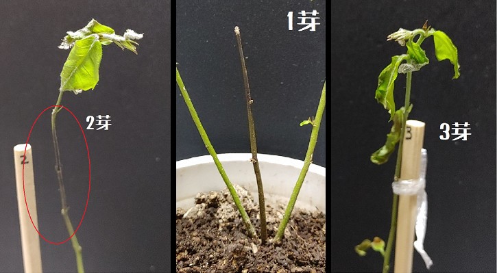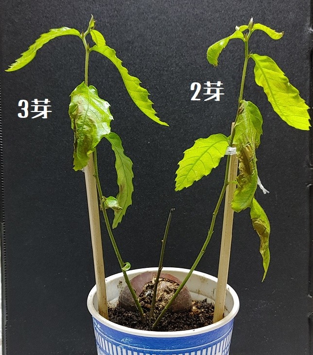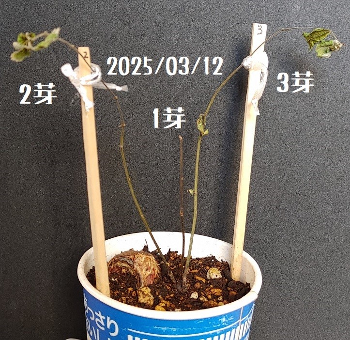 2芽3芽は大きかった葉が落ちてかなりピンチ。
