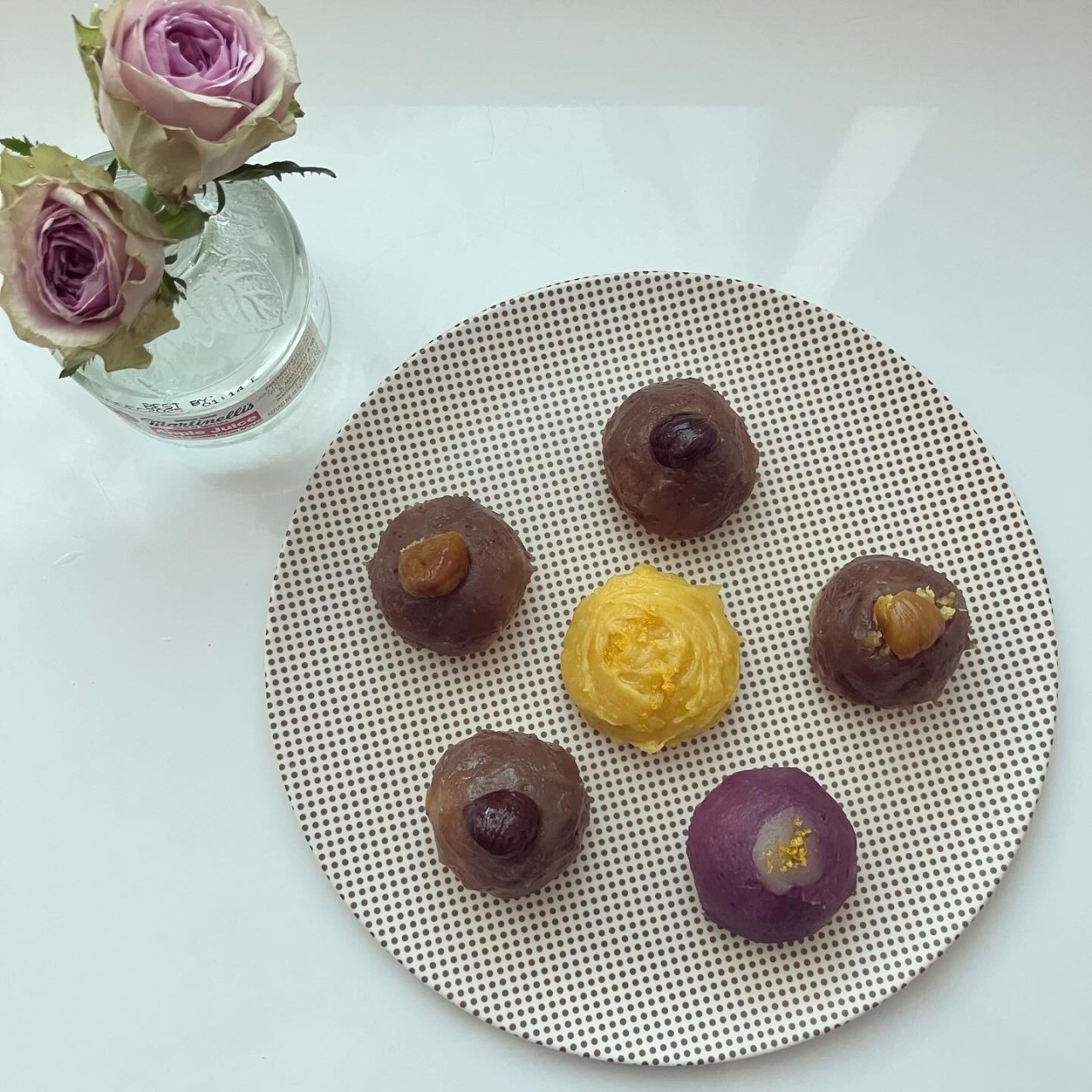 亀屋良長さんの道明寺おはぎのレシピはありがたい。餡は半端な長芋にかぼちゃと友だちがくれた紫芋パウダーで、あと富澤商店さんで買った甘栗あん。