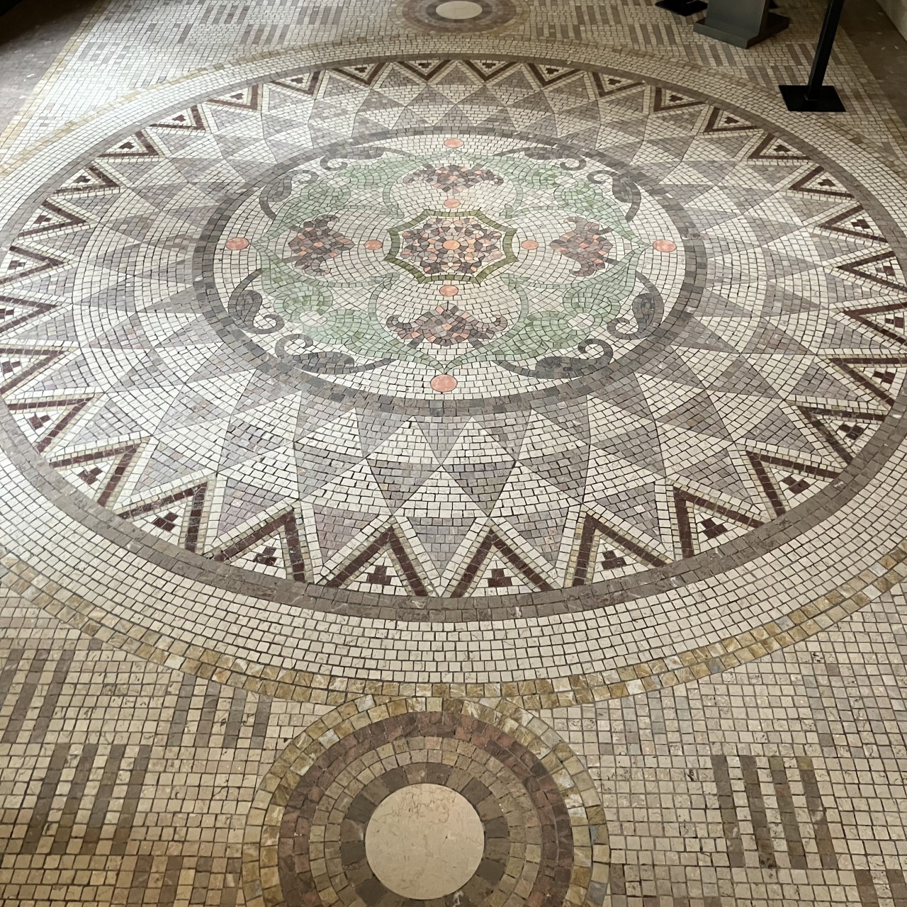 左の窓からみえる照明はエミール・ガレ作とのこと。彫り込まれたくだものはパイナップルだろうか、食への憧れと喜びが感じられる装飾だと思った。