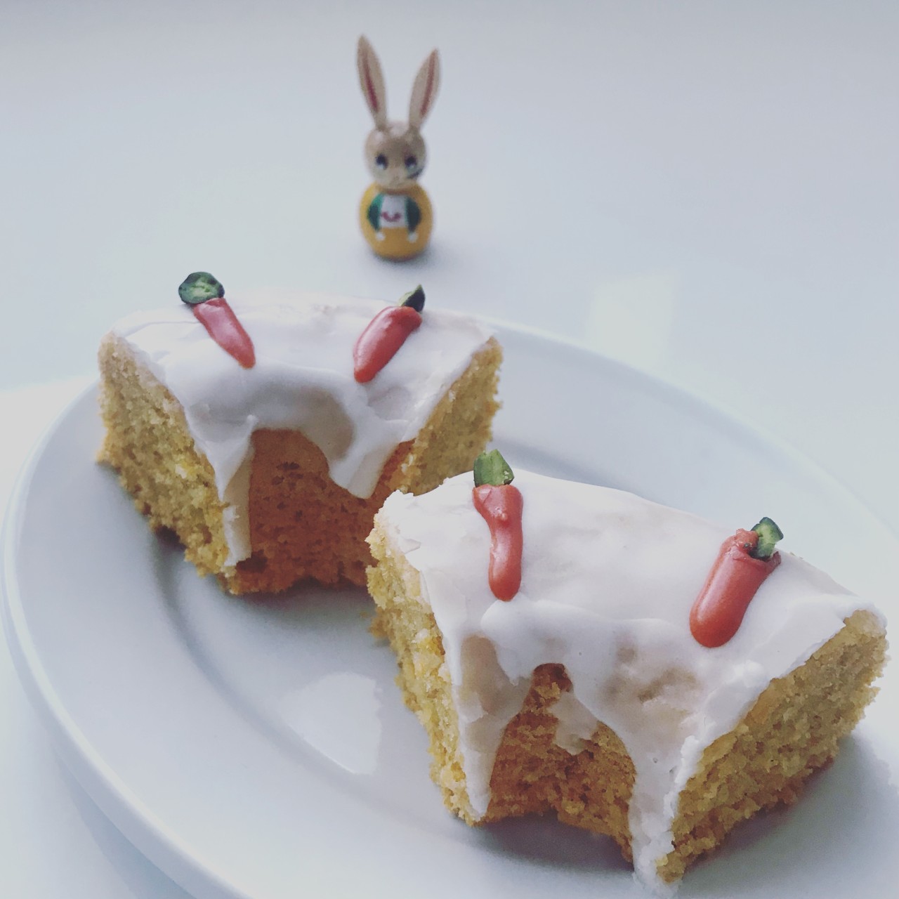 昨日焼いたにんじんケーキ。うさぎさんを招いた。