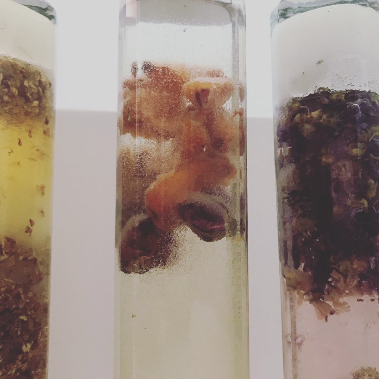 その後花茶のいくつかをお酒にしたらどうなるかと思い、ホワイトラムとグラニュー糖で漬けてみたのだ。それが二月。