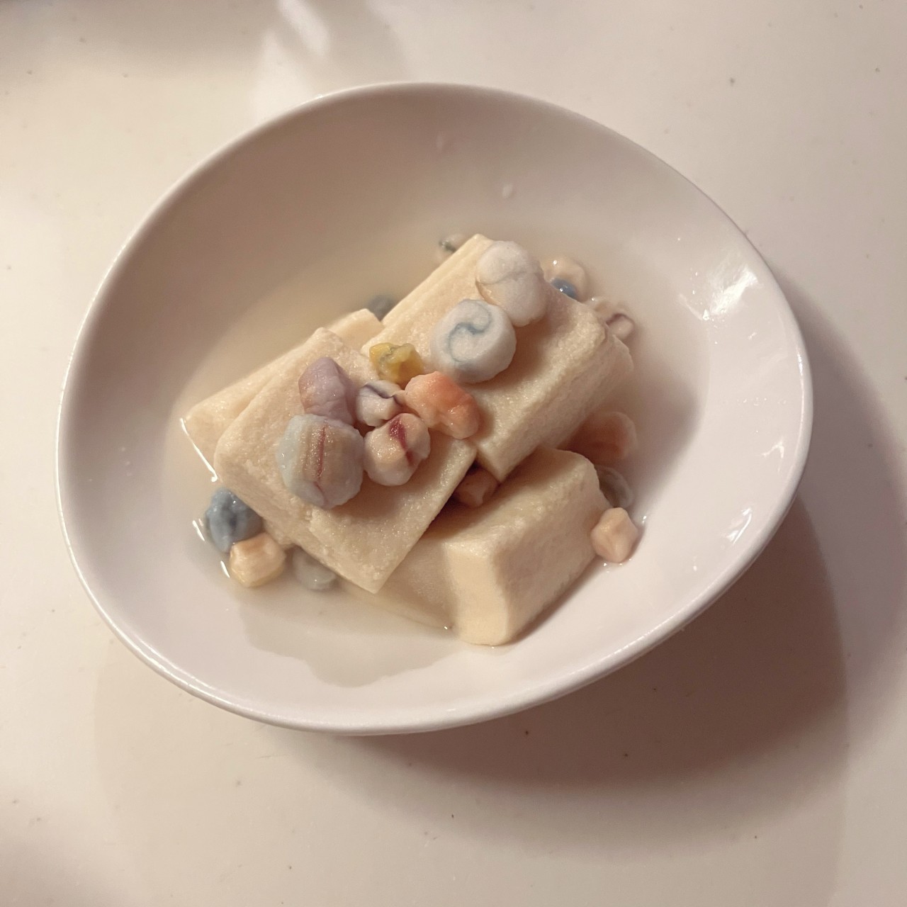 高野豆腐の出汁が澄んでいるので、麩が合うかも知らないと思い、吸わせてみた。