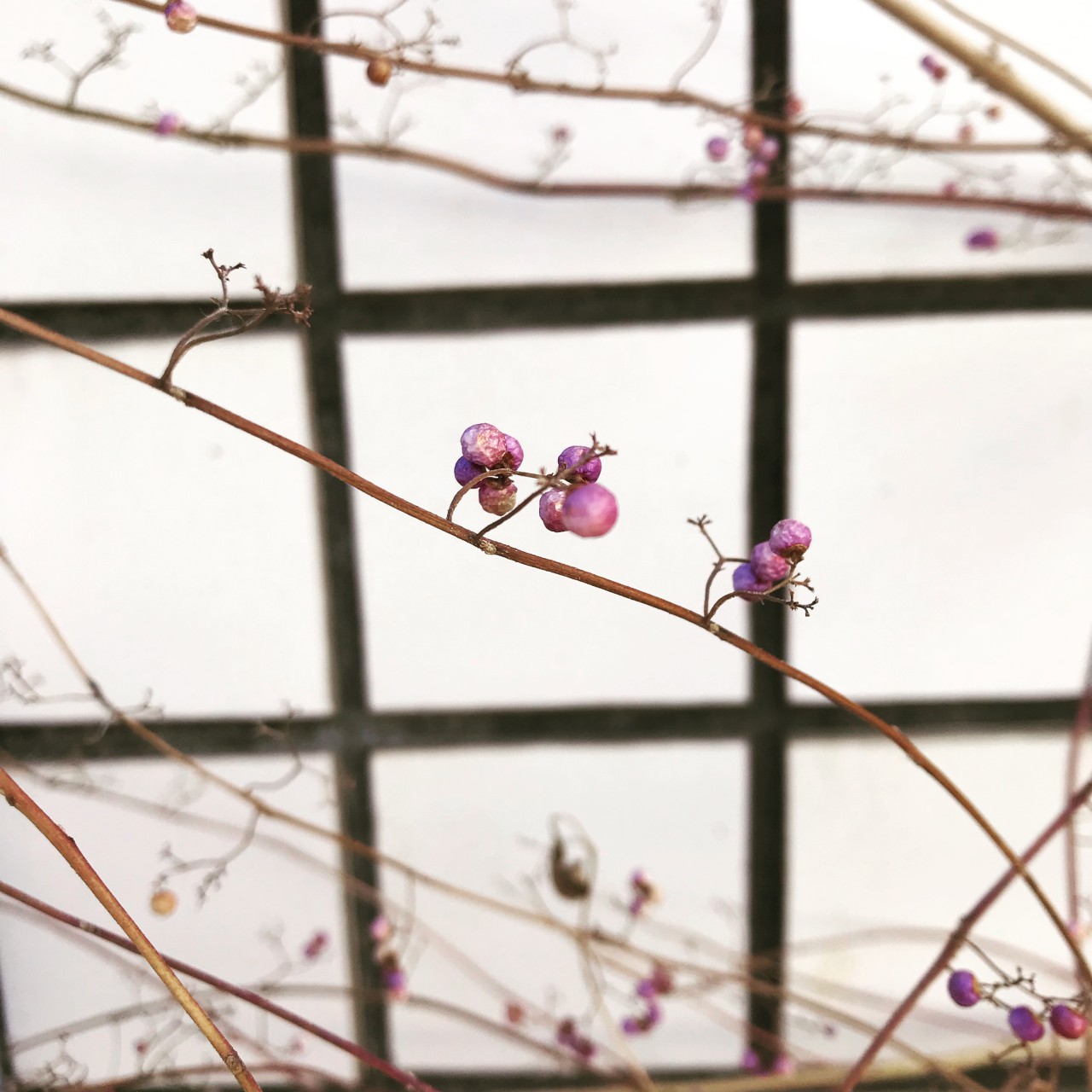 道沿いの花屋さんで何気なく見た鉢が瑞々しいそれで、「紫式部」と名があった。なんと。文豪だった。