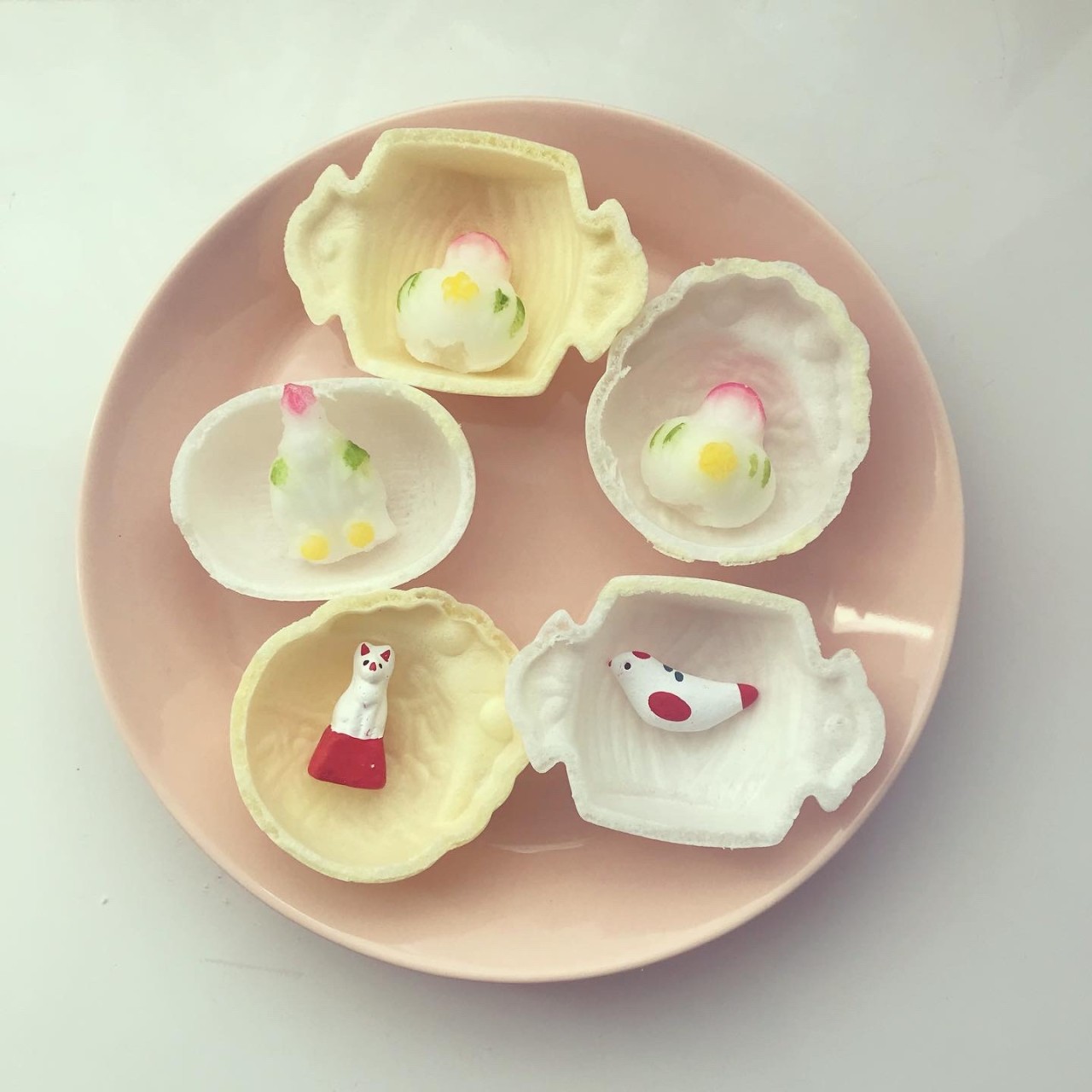 めでたい形の最中にはガレット・デ・ロワのフェーブの如く、小さな人形が入ってる。