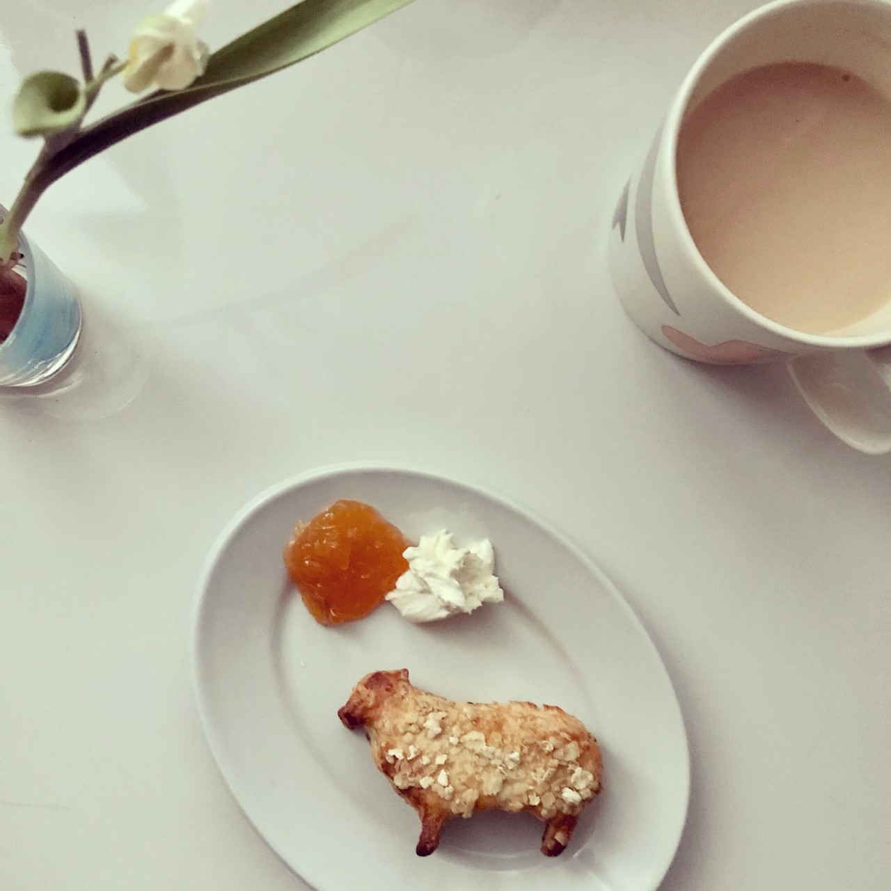おやつは先日焼いたひつじのスコーン、冷凍しておいたものを温めた。