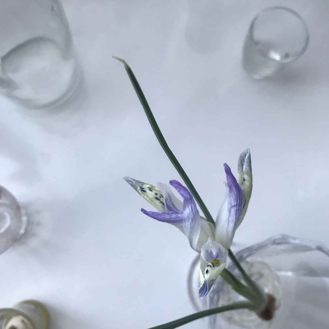 渦巻くヒヤシンスの根を見ていたらやはり伸ばしてあげた方が…と思い、空瓶に据えてみた。